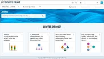 Shopper Explorer is Nielsen’s visual exploratory tool for ad-hoc consumer panel analytics. It gives users the flexibility to build their own custom product and buyer groups, utilizing the full power of Nielsen’s Reference Data to understand consumer behavior. Presented to users via business questions such as “Who is my competition?”, “What are the most important items?” or “How does my new product launch compare?”, this use case approach broadens the operability of these analytics, removing the need for users to manipulate and chart raw data.